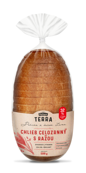 TERRA Celozrnný chlieb s ražou je poctivý a chutný chlieb s 27 % celozrnnej múky, ktorý zasýti a zároveň podporí zdravé trávenie. Je bohatý na vlákninu, prirodzený zdroj bielkovín a má nízky obsah cukru – bez zbytočností, s rešpektom k prírode. Navyše, obsah ražnej múky mu dodáva jedinečnú a vyváženú chuť. Skvelý spoločník k raňajkám, nátierkam či šalátom.